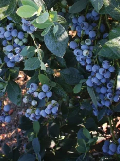Early to fruit, the medium-to-large, sky blue berries are spicy sweet. The upright, spreading 4-6 feet tall plants have bright blue-green foliage that contrasts with pinky-white flowers in spring, and make lovely ornamental shrubs with the foliage turning burgundy in fall. Plant with other varieties for better yield. Misty has a low chill requirement of 300 hours, and so is recommended for warmer climates as well as cooler areas to zone 5. “Chill requirement” refers to the accumulated annual hours of temperatures a plant experiences between freezing and 45 F that is required to break dormancy.