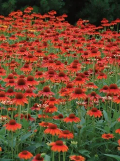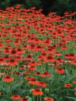 Very strong, well-branched, plants produce large single daisies in coral-pink color and bronze cones. Color is strong and lasts for months in the garden. The flowers are excellent for cutting and attract butterflies, hummingbirds and bees. Echinacea purpurea, commonly known as purple coneflower, is an herbaceous perennial that is native to the central to southeastern United States. Easy-to-grow plant is tolerant of drought, heat, humidity and poor soil. Plants bloom with showy, daisy-like flowers from mid-summer until first frost. Excellent choice for perennial border, natural meadow, butterfly or pollinator garden, or wildflower garden.