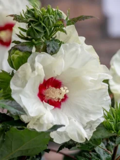 Custard-yellow flowers with ruffled petals and cranberry-pink eyes create a fairytale scene in the garden. Soft 7-8” blooms retain their creamy color for a long time. Compact plants have attractive emerald-green foliage and are deer-resistant, too! Proven Winners USPP33181.