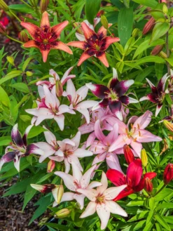 Growing to almost 3, this rainbow of mixed colors provides vertical accents to nearly every garden that needs a natural flair to enhance its architecture. The lilys vibrant flower heads show various flower forms, some star-shaped others rounded, but when grown in a mass grouping, a very powerful display.