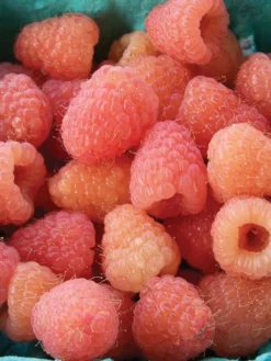 These berries are a visual treat; deeply blushed, golden champagne and distinctively cone shape. Plants are very productive and give two harvests in one season (hence the “double” in its name) with fruit produced the first fall and a second crop produced on the same canes the following summer. The excellent flavor, unusual color and pleasing conical shape make Double Gold a jewel in your garden. U.S. Plant Patent #24,811.