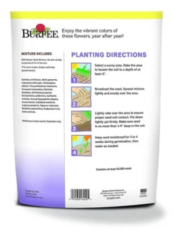 Pollinator friendly mix that includes a diversity of flowering plants that produce pollen and nectar for different pollinators with different colors, scents and flower forms. The availability of food for pollinators is important from early spring to late fall. This perennial flower mix offers a range of plants to provide needed sustenance spring, summer and fall. Mix contains Yarrow, Alyssum, English daisy, Calendula, Siberian Wallflower, Shasta daisy, Coreopsis, Sweet William, Purple Coneflower, California poppy, Perennial Gaillardia, Annual Babys Breath, Blue Flax, Perennial Lupine, Iceland Poppy, Prairie Coneflower, Black Eyed Susan, and Viola. This mix covers 1000 sq. ft.